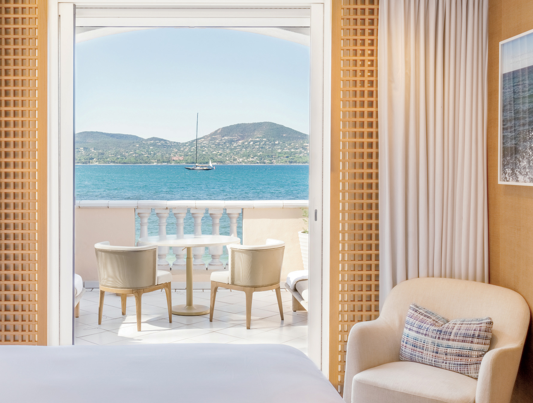 Between pine groves and the azure horizon, CHEVAL BLANC SAINT-TROPEZ celebrates the art of hospitality. Under the influence of artist Roger Capron and designer Jean-Michel Wilmotte, décor and architecture engage in a dialogue with light and materials. The Michelin-starred cuisine of Arnaud Donckele elevates local produce and Provençal terroirs. The Guerlain Spa and its wellness universe beautifully complete the experience.