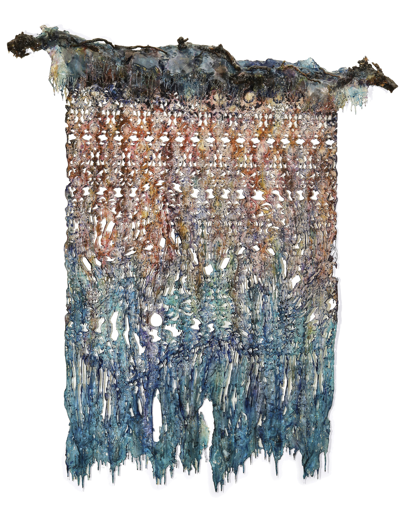 Annalù, figure de la Biennale de Venise, ville dont elle est native, évolue sur un terrain hybride, entre la peinture et la sculpture, avec toujours un sens du grandiose poétique. Chez elle, la domination de la matière, de la chimie et des substances en hommage aux 4 éléments primordiaux fait partie intégrante d’un processus d’exploration plus large qui implique certes l’art, mais aussi les dimensions plus impalpables de l’esprit. Capable d’assembler des éléments incongrus comme la résine, le plexiglass, le verre, et le papier, l’écorce et la laine de verre, le bitume et le sable, le ciment et les racines, Annalù fait preuve de la même aptitude que l’apprenti sorcier créateur de nouvelles réalités. À travers sa série « Liquid lace », l’intention est par exemple de réunir les mondes vénitiens de Murano et de Burano en une seule forme, en créant une dentelle surréaliste et fantastique faite de la même substance que l’eau. Ses motifs dentelés se déforment ainsi dynamiquement vers le bas, transformant les textures en vagues pleines d’atmosphères chromatiques, évocation parfaite des vibrations de formes qui se reflètent dans l’eau. Un monde de l’émotion au lyrisme aussi onirique qu’organique dont l’onde se propage jusque dans les plus prestigieuses collections.