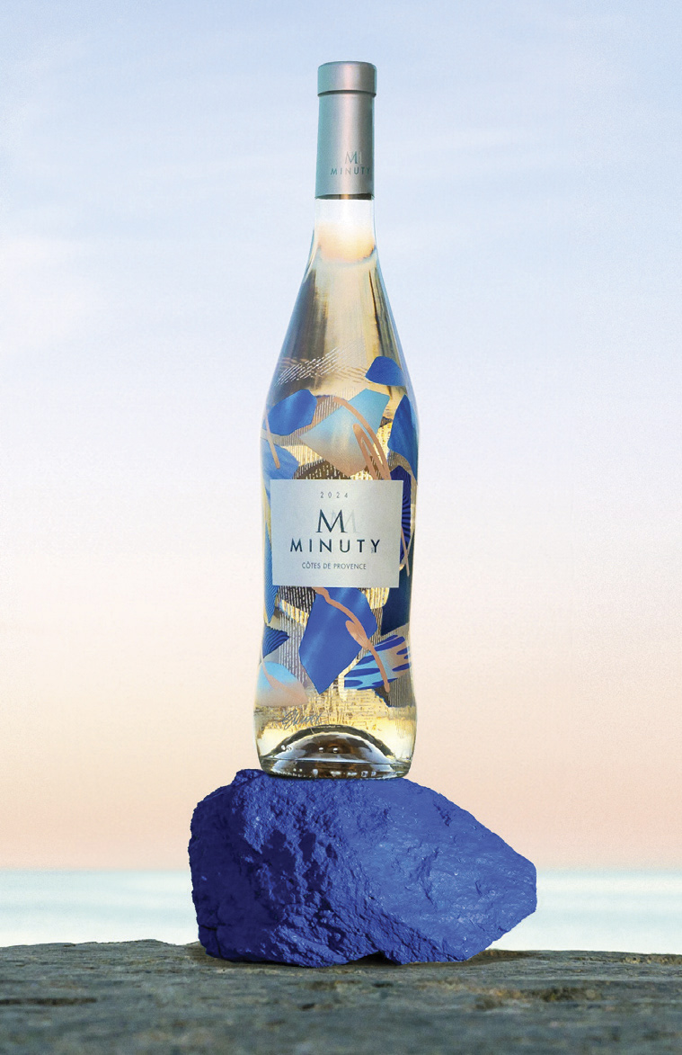 MINUTY continues its artistic collaborations for the M Rosé cuvée with a new bottle designed by Australian contemporary artist Elliott Routledge. Inspired by nature’s fragments, each shade of blue reflects the energy of the French Riviera, especially the Saint-Tropez Peninsula, home to Minuty since 1936. The luminous bottle reveals the smooth, rounded expression of one of Provence’s finest rosés.