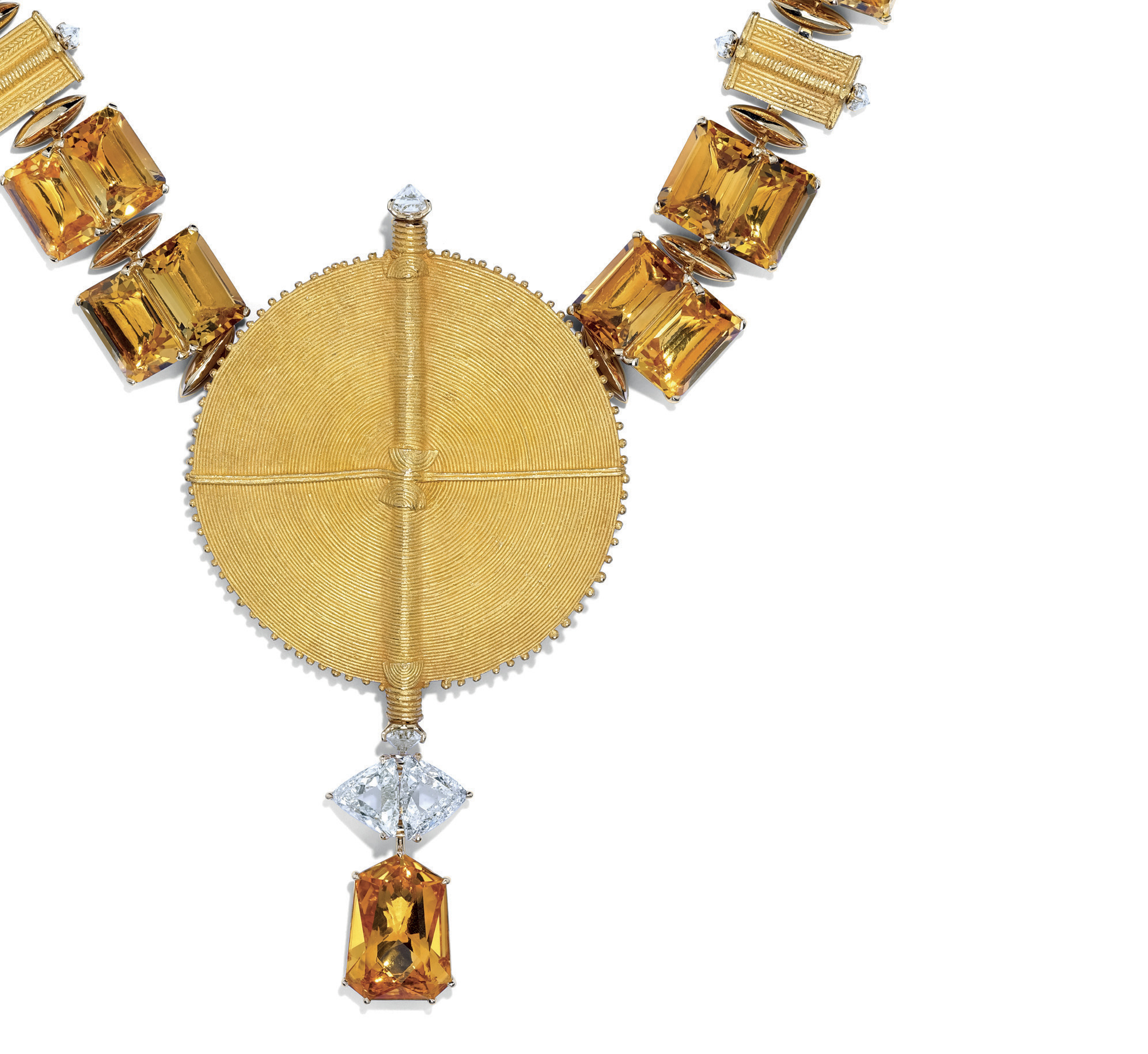 Les créations sont hautement imprévisibles – qu’il s’agisse des sections sculptées en or des colliers Baoulé ou d’une paire de puissants bracelets en titane – réinterprétant les matériaux pour créer quelque chose d’irréplicable. Chaque œuvre est façonnée autour de pierres précieuses, et c’est la fascination partagée de Glenn et Joe pour ces merveilles naturelles qui guide tout le processus de création.